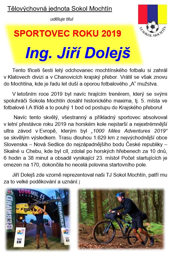 ing. Jiří DOLEJŠ - nejlepší sportovec TJ Sokol Mochtín roku 2019